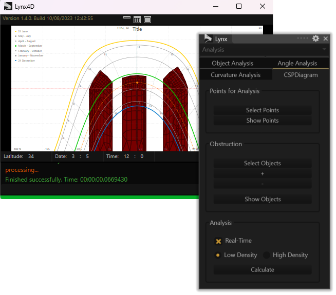 The Shading Analysis command calculates solar obstructions on a point represented in a cylindrical sun path diagram